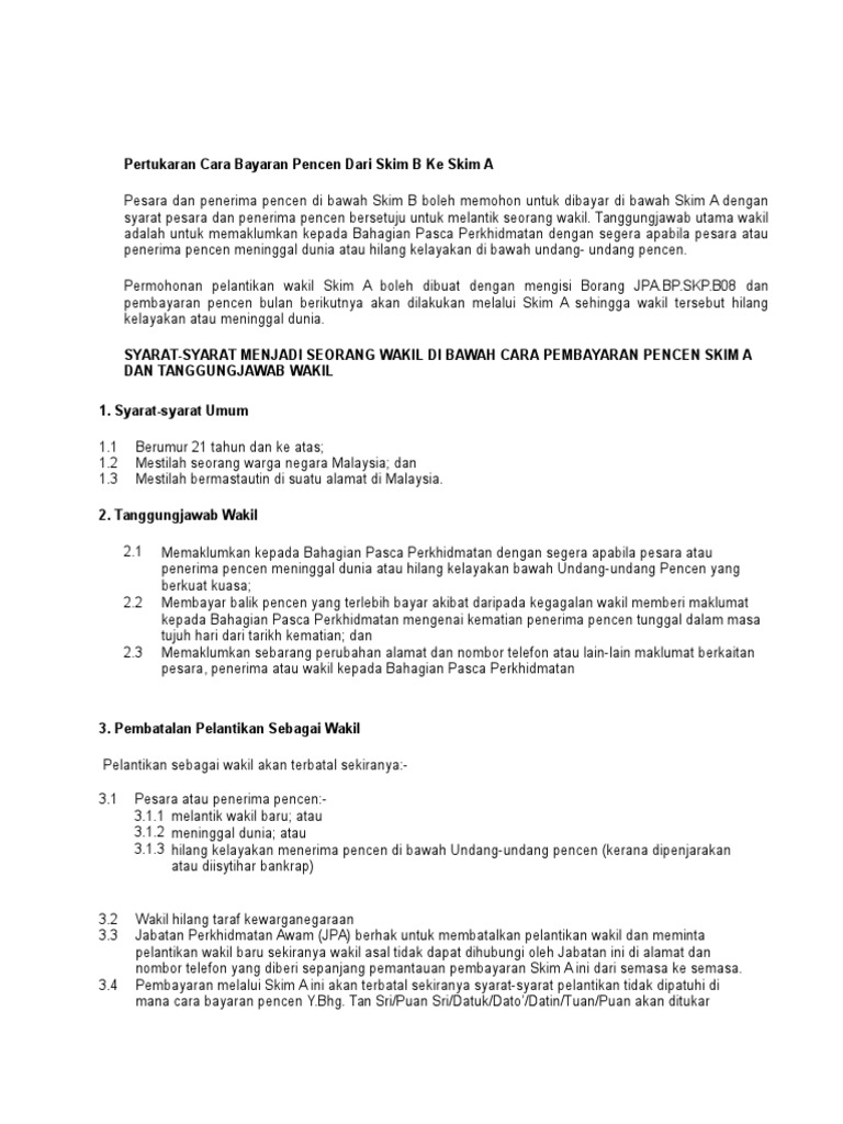 Borang Pertukaran Pencen Skim B Kepada Skim A Pdf Document
